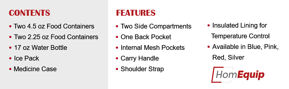 Additional features like a water bottle shaker and medicine box help support a nutritional diet. With premade breakfasts, lunches, and dinners you’ll save yourself time and money. With this insulated cooler from HomEquip, you can live a well-balanced life and improve your overall health!